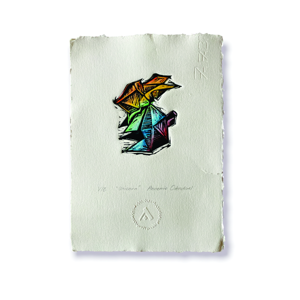 This is a varied edition (meaning each one looks different), hand printed and painted linocut. Because they are hand painted, each one is truly unique, just as we are.