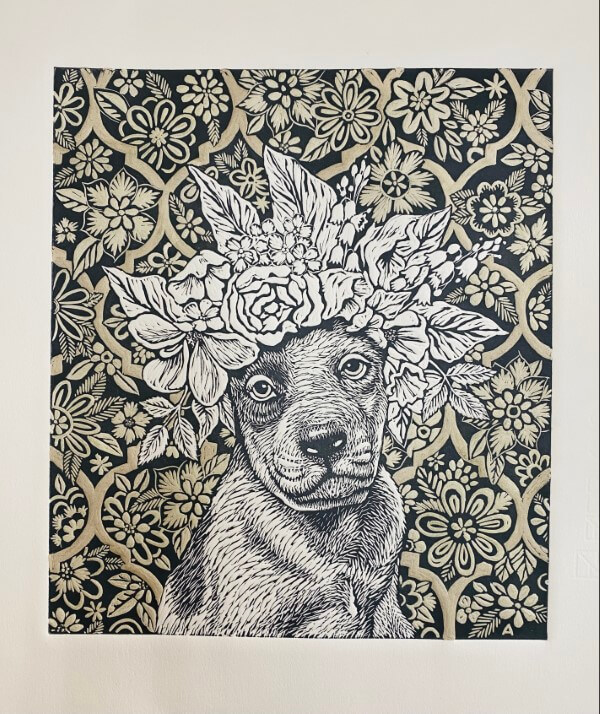 Medium: Monotone Hand printed and coloured Linocut on Fabriano Rosapina 285gsm
